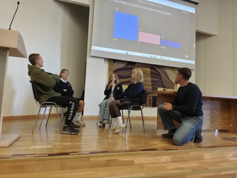 Lektorius Vytenis Grigas kalbėjo jaunimui aktualiomis temomis – apie agresijos kilmę, nusikalstamumo priežastis, atsakomybę už savo veiksmus ir psichoaktyvių medžiagų poveikį. Diskusijos, praktinės užduotys ir atviri pokalbiai skatino mąstyti, kaip kasdieniai sprendimai formuoja mūsų vertybes ir gyvenimo kelią.