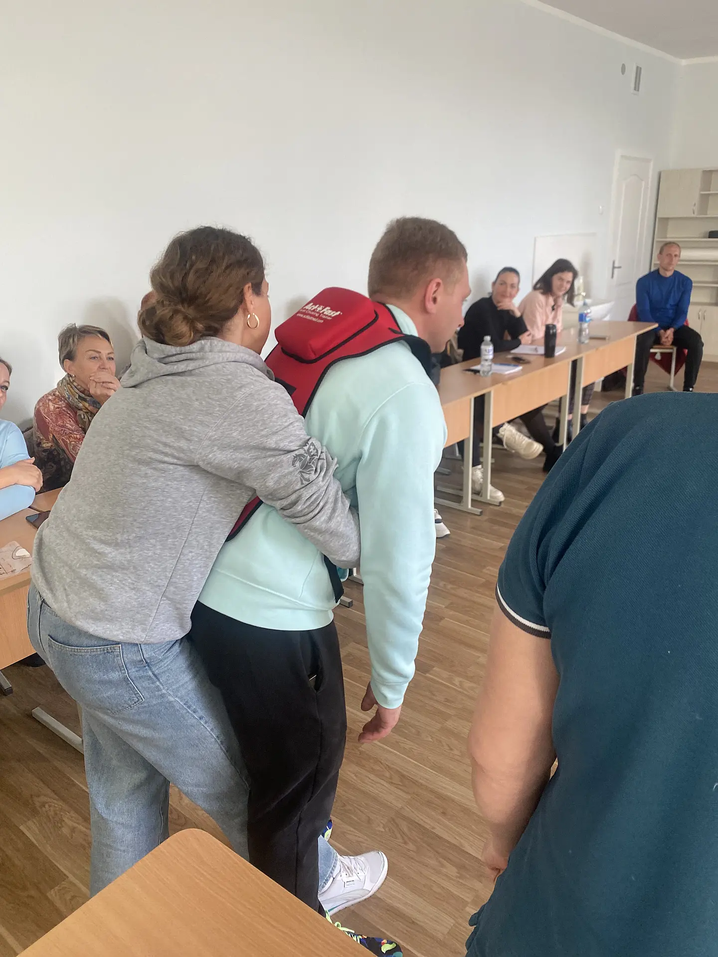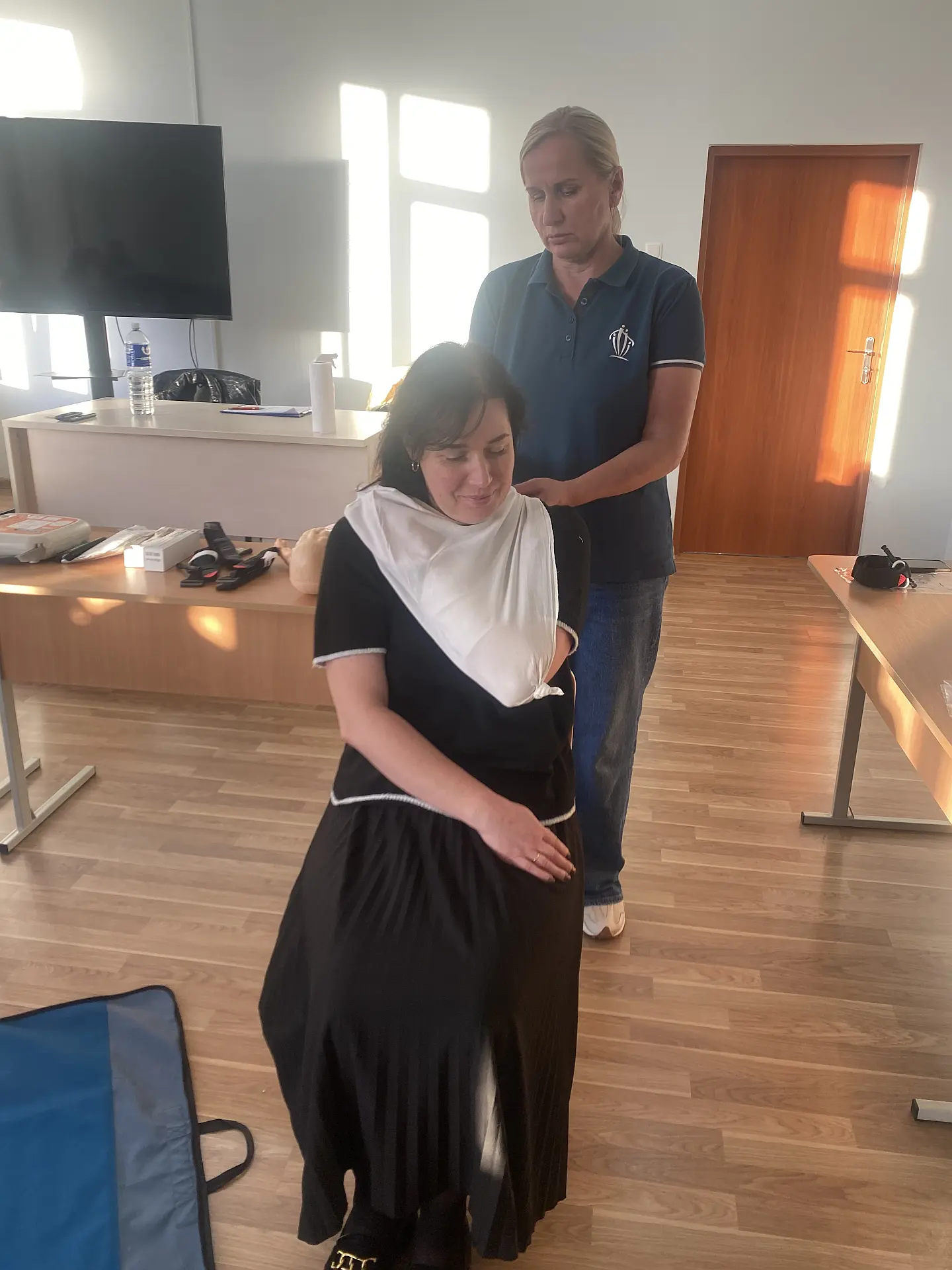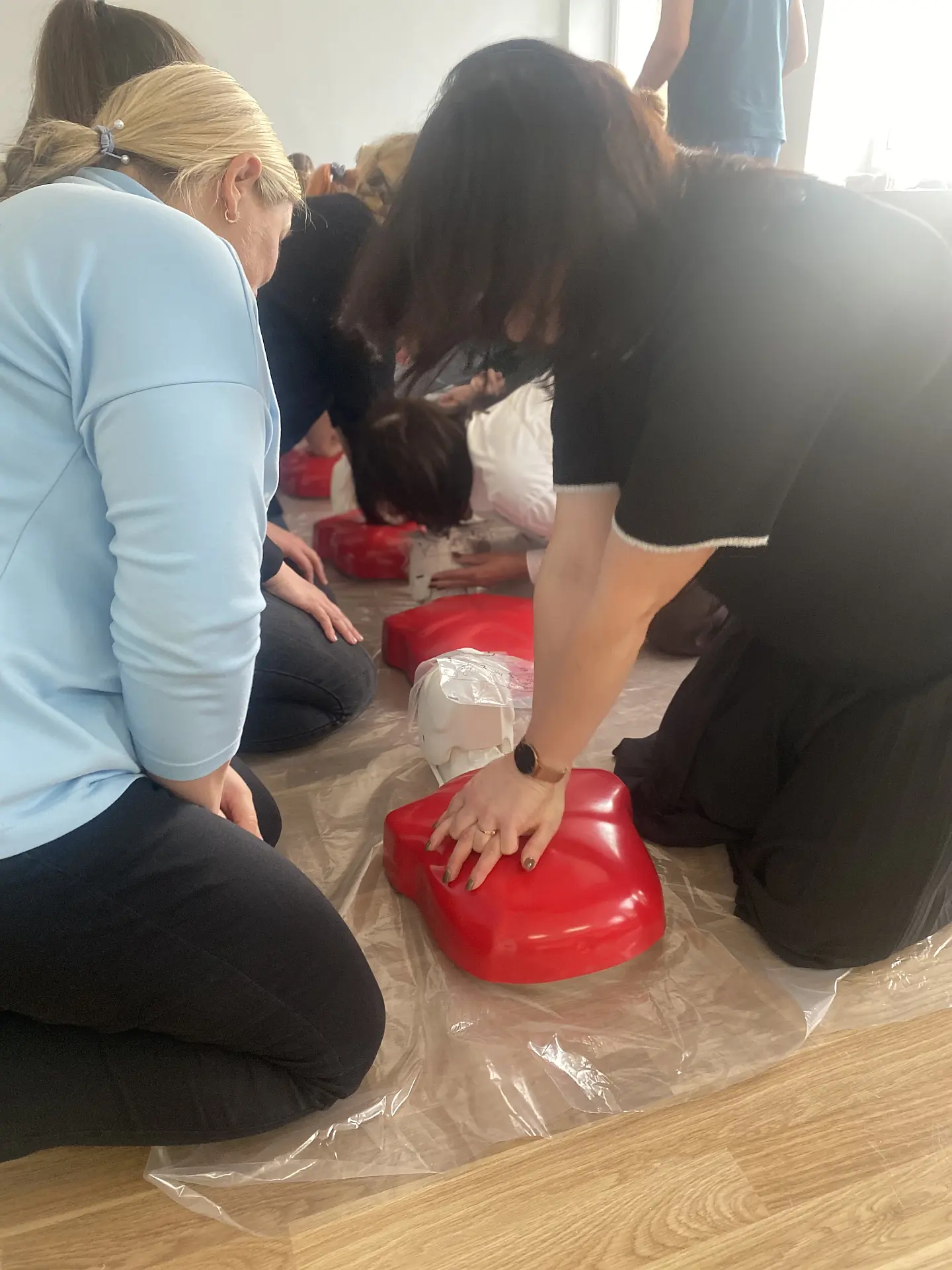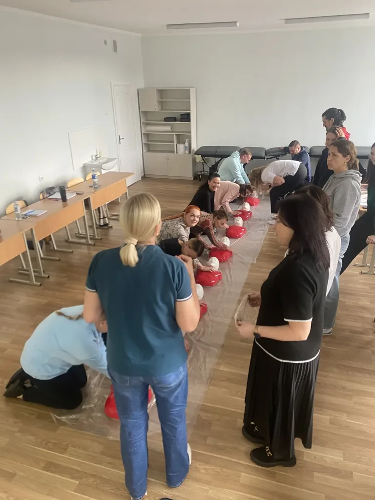 Visuomenės sveikatos biuro specialistė Snieguolė Tarasevičienė vedė praktinius mokymus, kurių metu mokiniai mokėsi, kaip elgtis gyvybei pavojingose situacijose – atpažinti pavojų, suteikti pagalbą, atlikti gaivinimą bei tinkamai panaudoti turimas priemones.