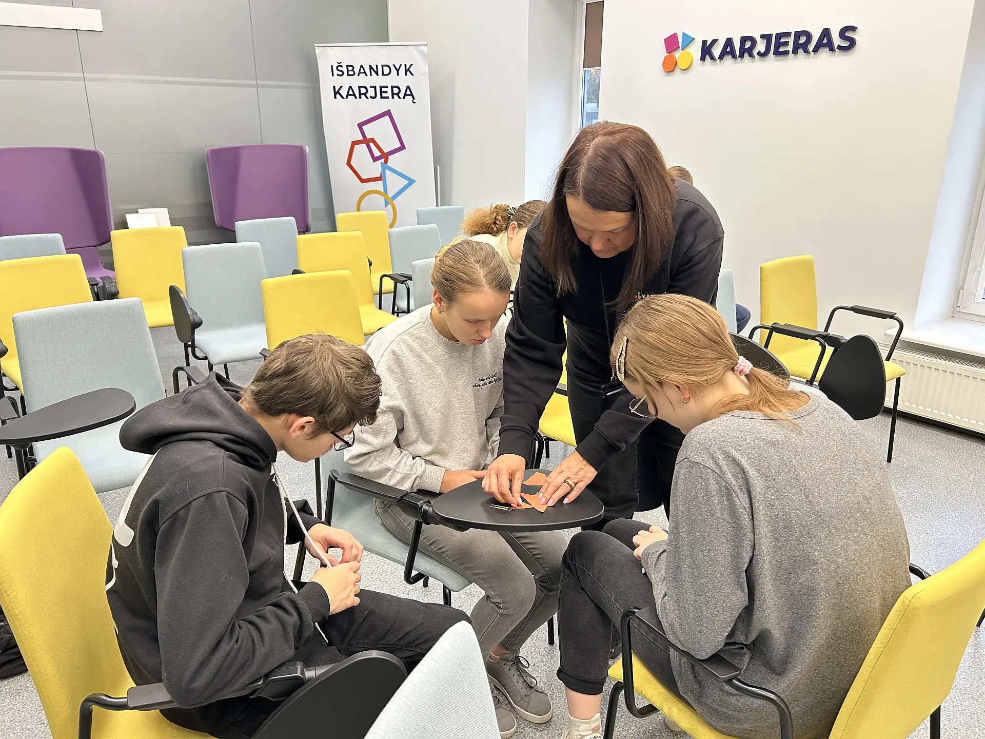 Čia mokiniai sužinojo, kokias galimybes siūlo Karjeras ir išbandė praktines veiklas, padedančias geriau suprasti, kokiose srityse jie jaučiasi stipriausi.