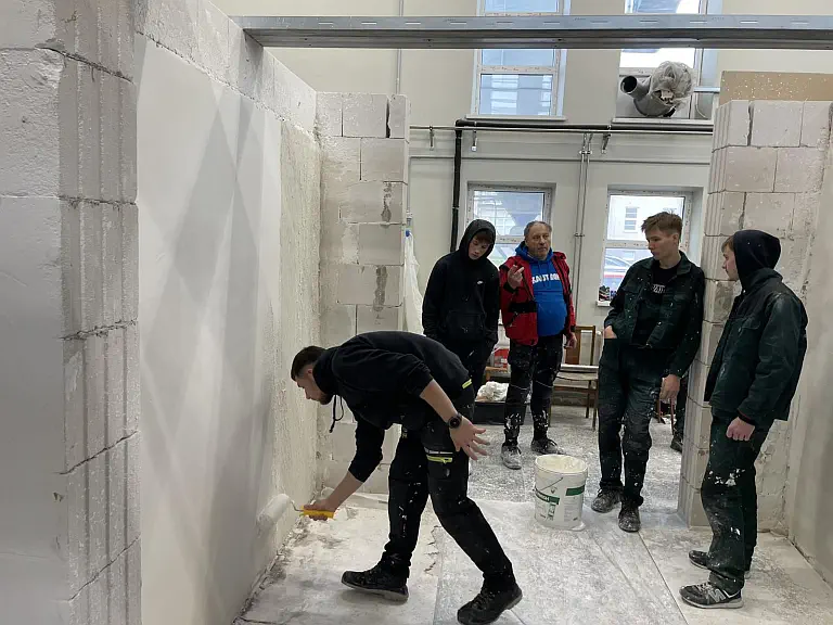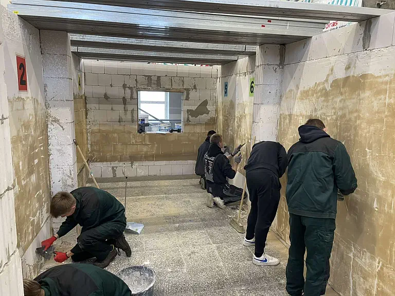 Kudirkos Naumiesčio skyriaus apdailininko specialybės mokiniai kartu su profesijos mokytoju Arūnu Jonikaičiu savaitę praleido Kauno technologijų mokymo sektoriniame praktinio mokymo centre, kur gilino savo praktinius įgūdžius ir žinias.